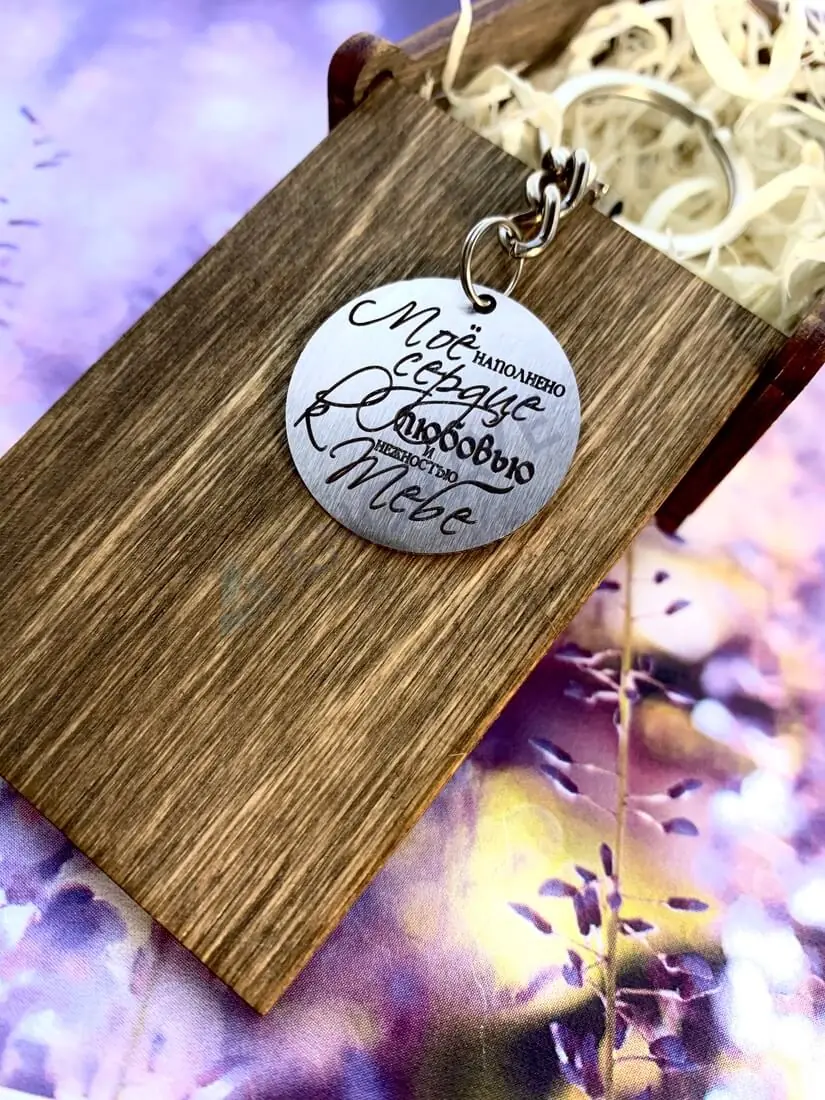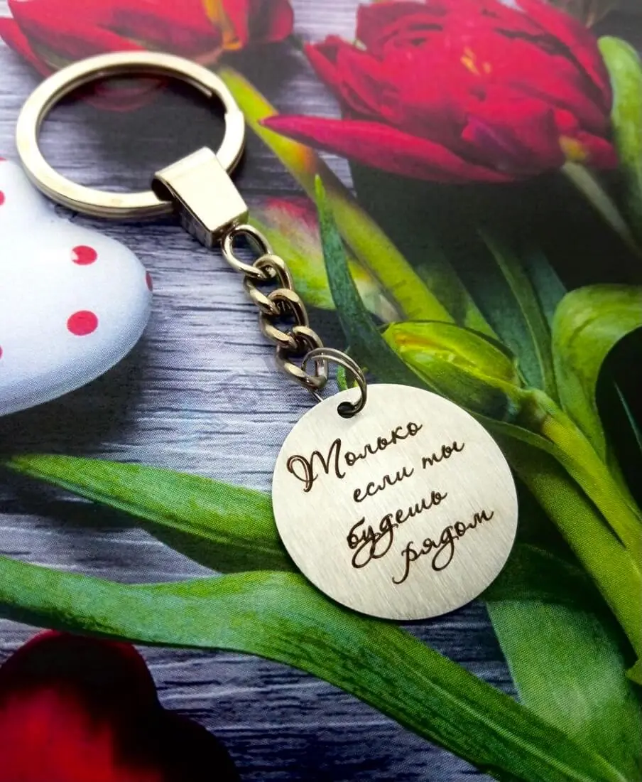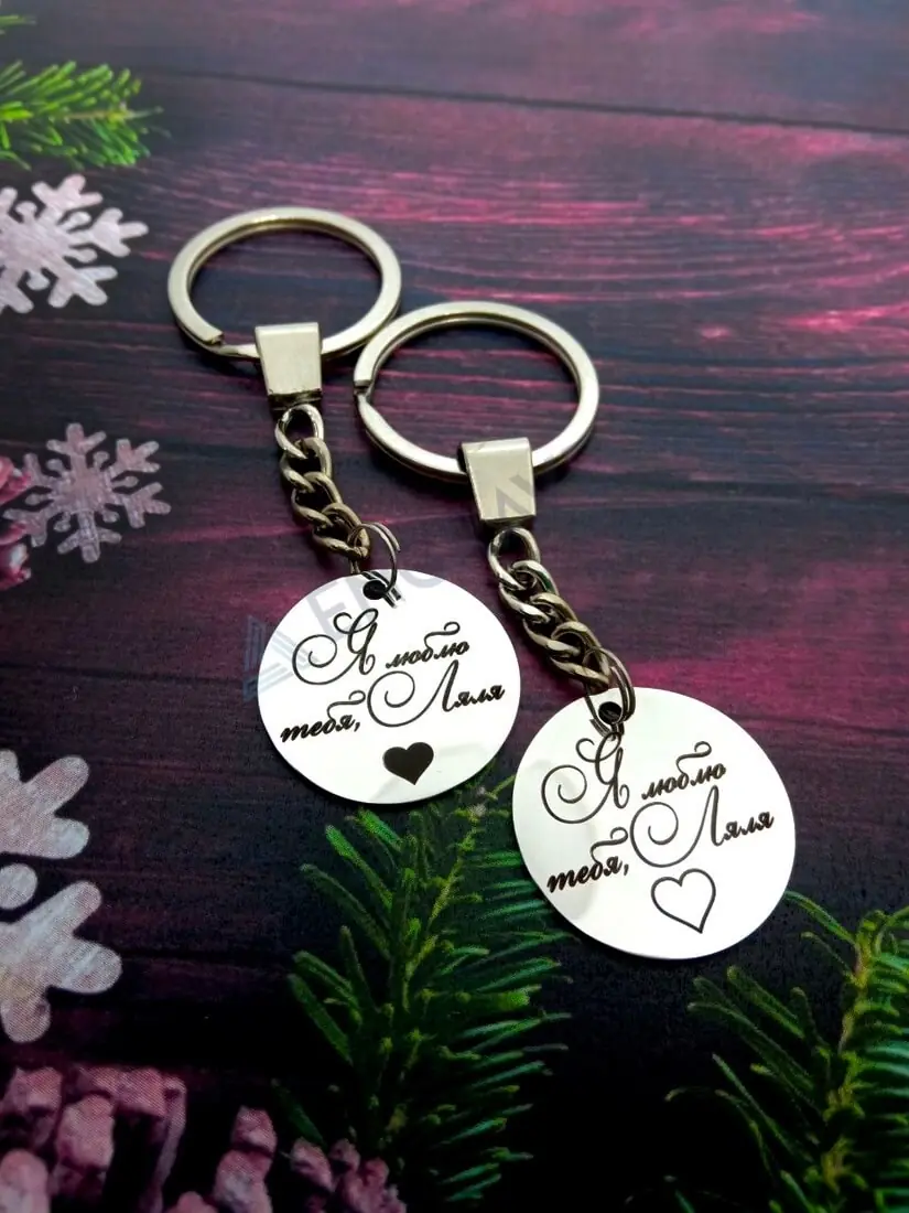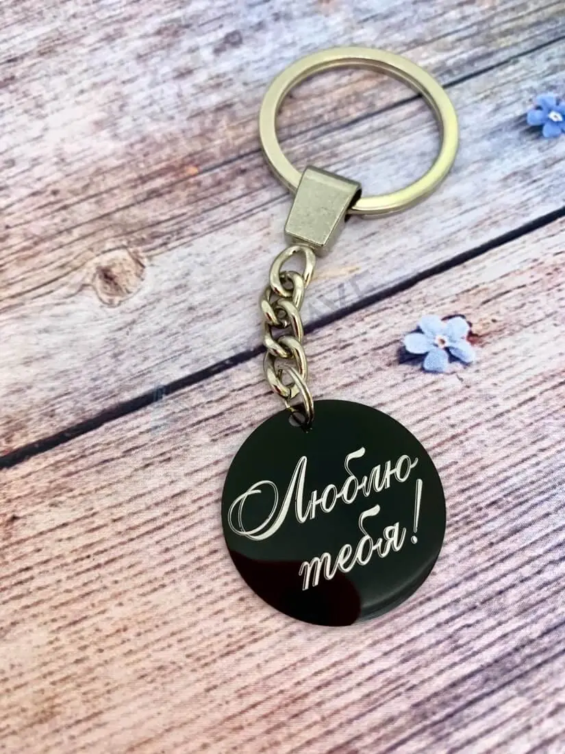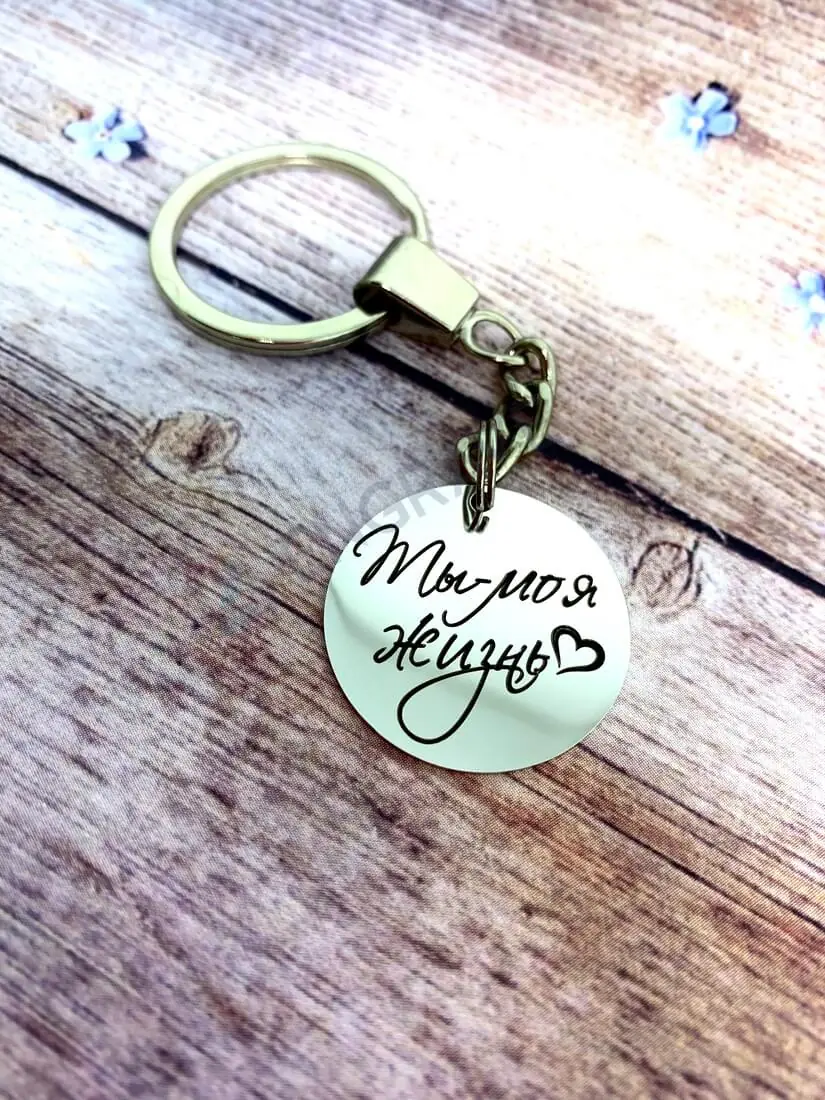 *** | Круглий брелок з гравіюванням, кільце з ланцюжком, маленьке з'єднувалье кільце |