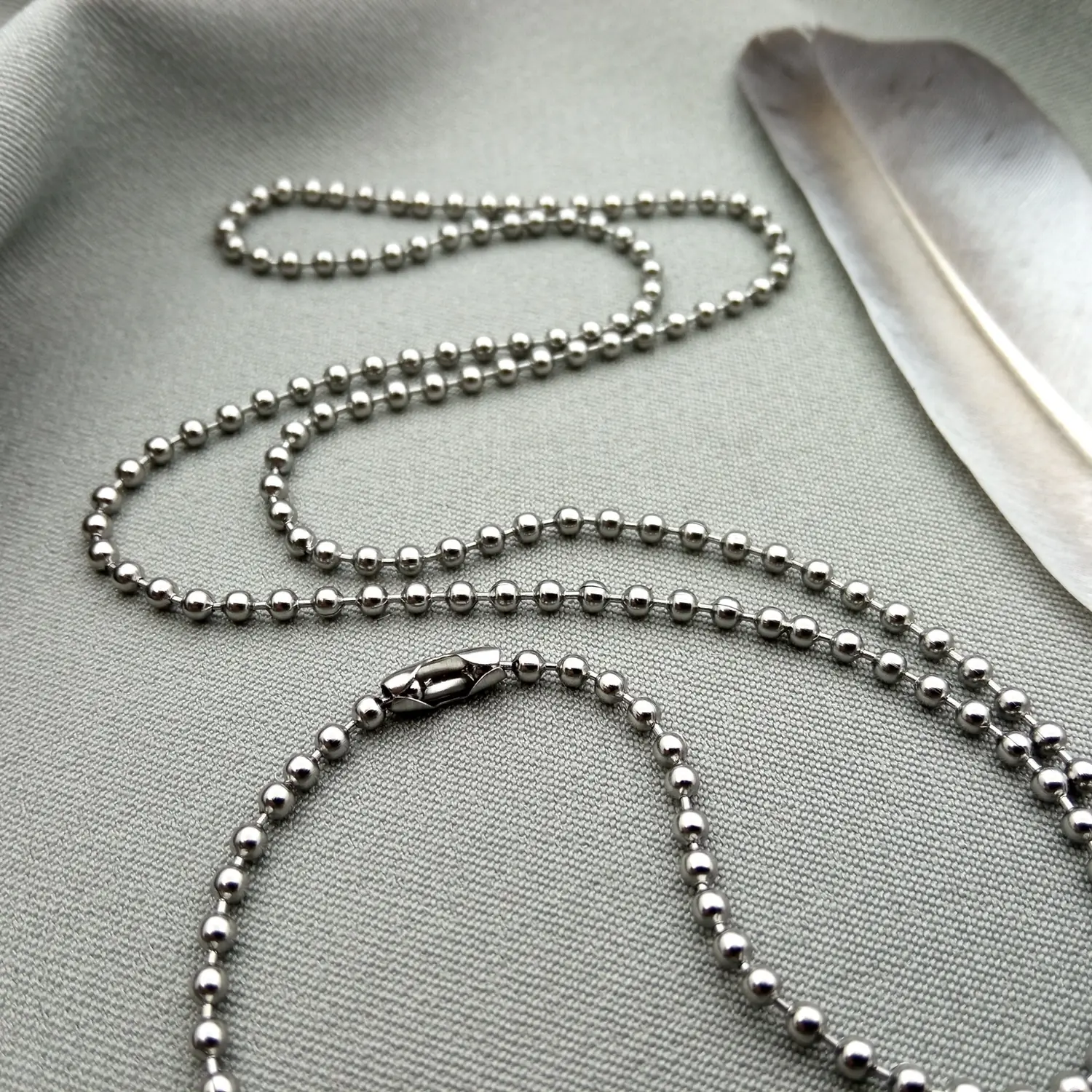 Ланцюжок кульковий з неіржавіючої сталі. Не темніє, не іржавіє, не фарбує шкіру, стійкий до води. Розмір - 60 см.