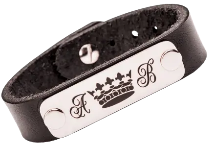 Шкіряний браслет зі сталевою табличкою та персональним гравіюванням - це виріб з високоякісної італійської ремінної шкіри, доповнений міцною пластиною з хірургічної ювелірної сталі, на яку наноситься будь-який текст або зображення, що задовольняють розміру поверхні. Самі таблички представлені в двох кольорах: сріблястий та позолочений. Браслети доступні в двох розмірах та оснащені регульованими гвинтами для комфортної підгонки на зап'ясток.