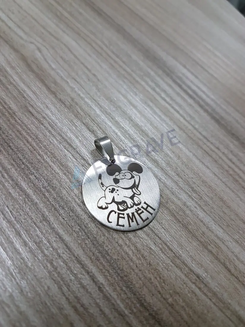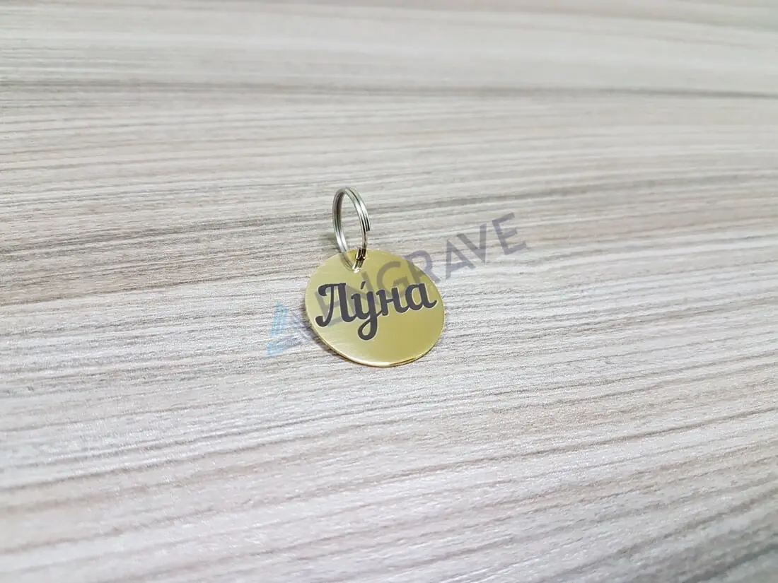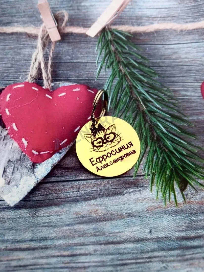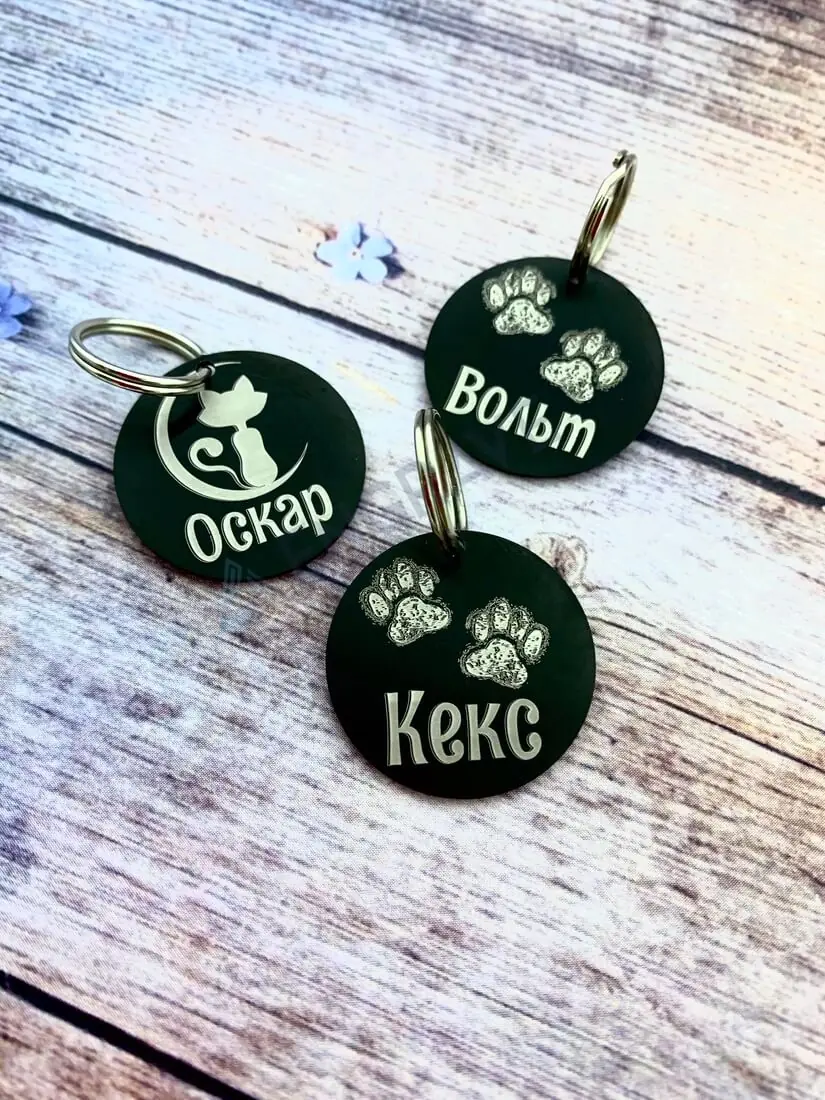 *** | Круглий адресник з гравіюванням, сталеве кільце для кріплення. |