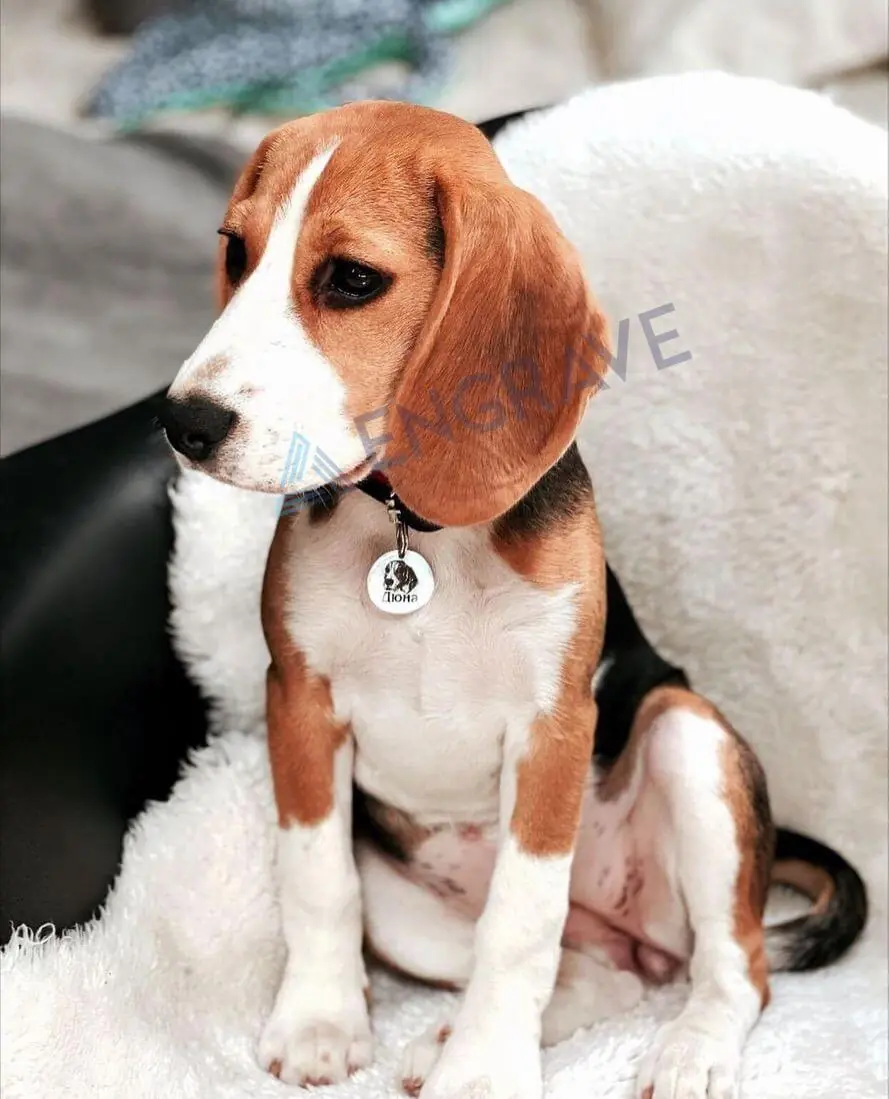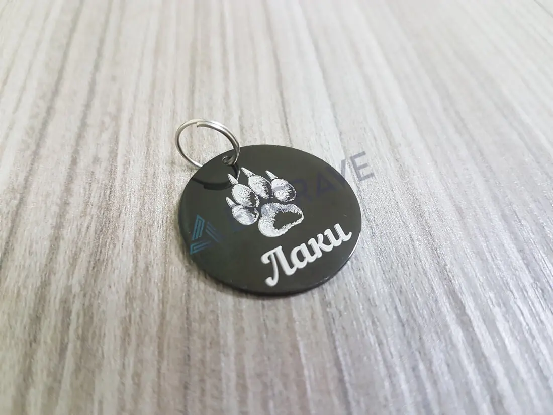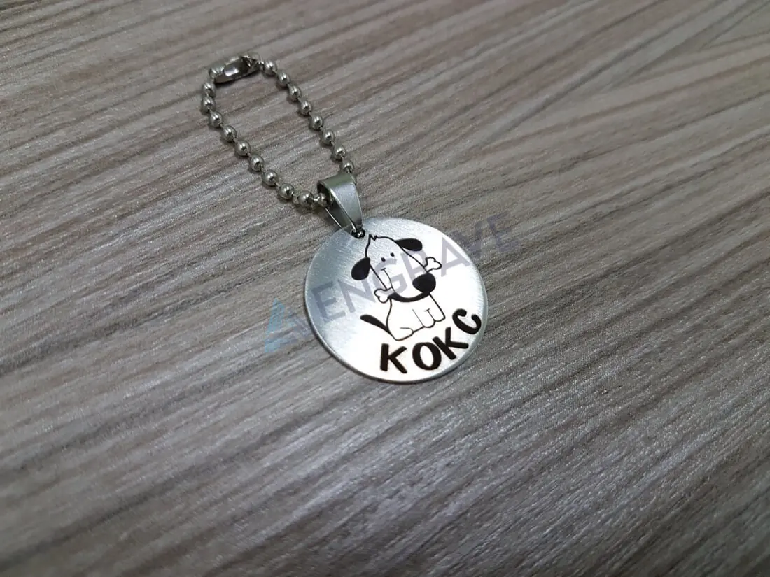 *** | Круглий адресник з гравіюванням, сталеве кільце для кріплення. |