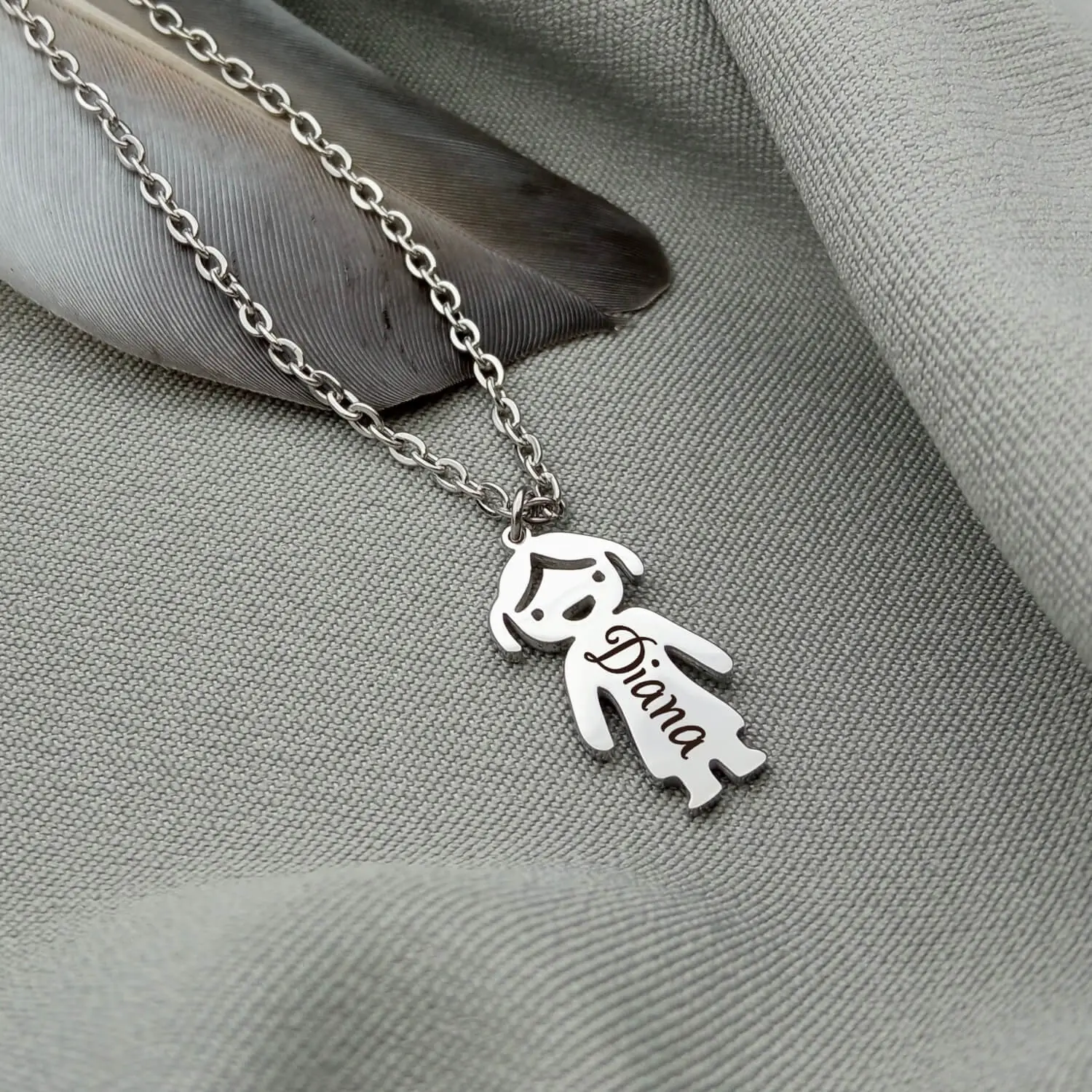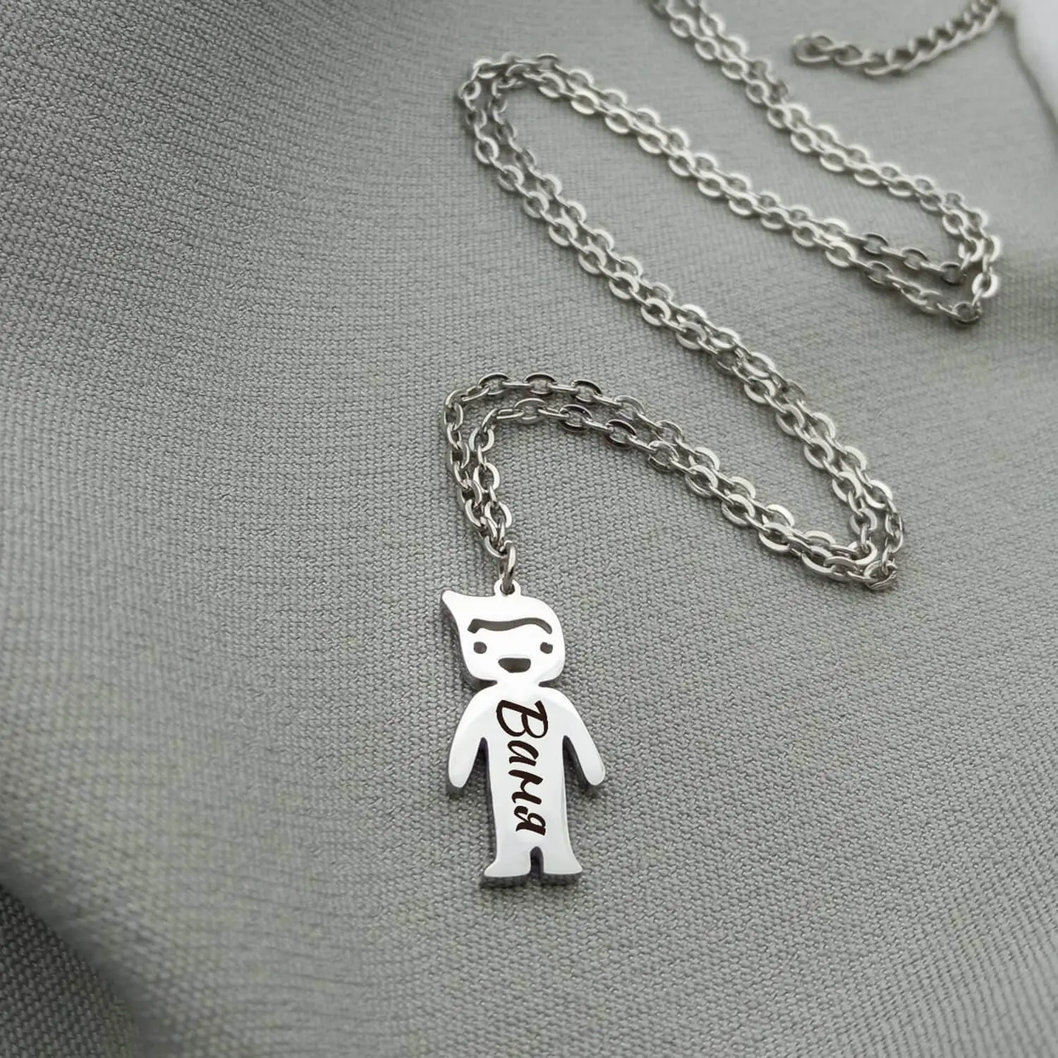 *** | Кулон "Дівчинка" з гравіюванням, ланковий сталевий ланцюжок |