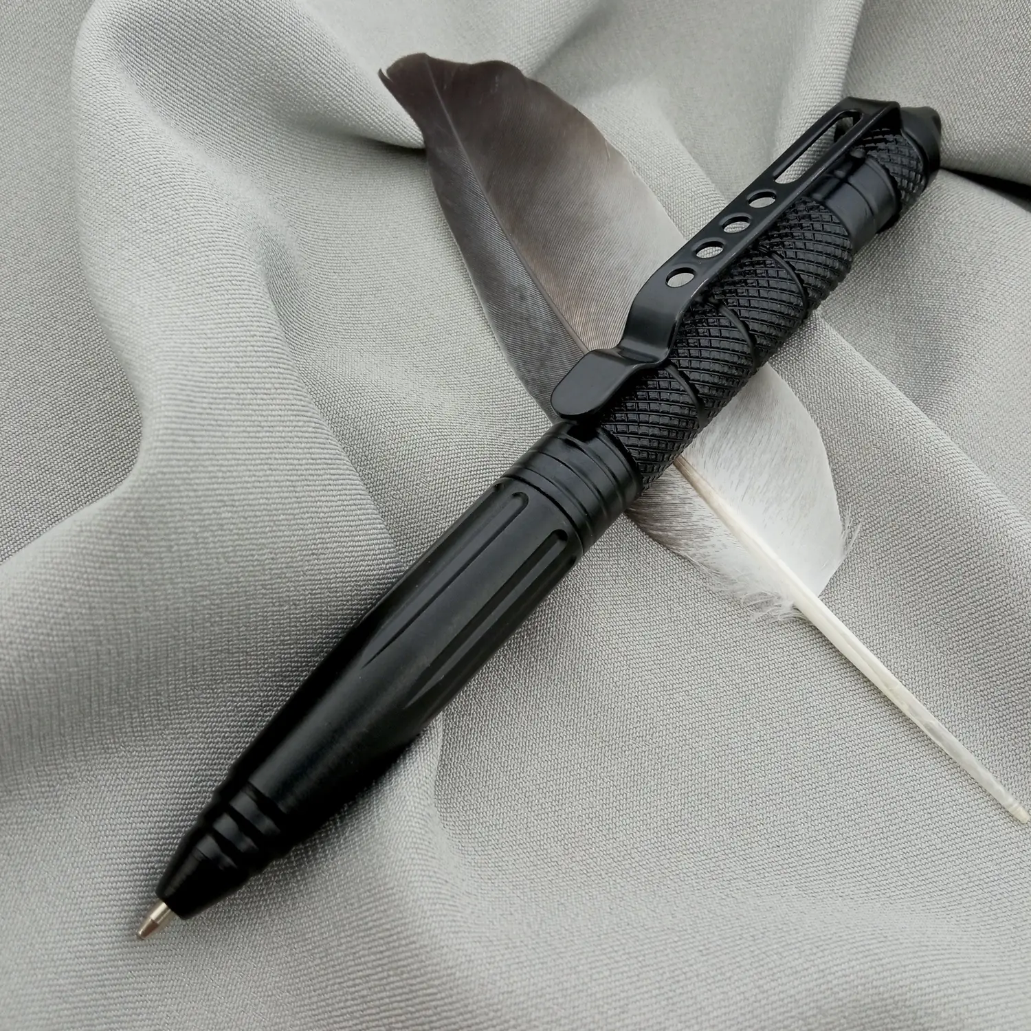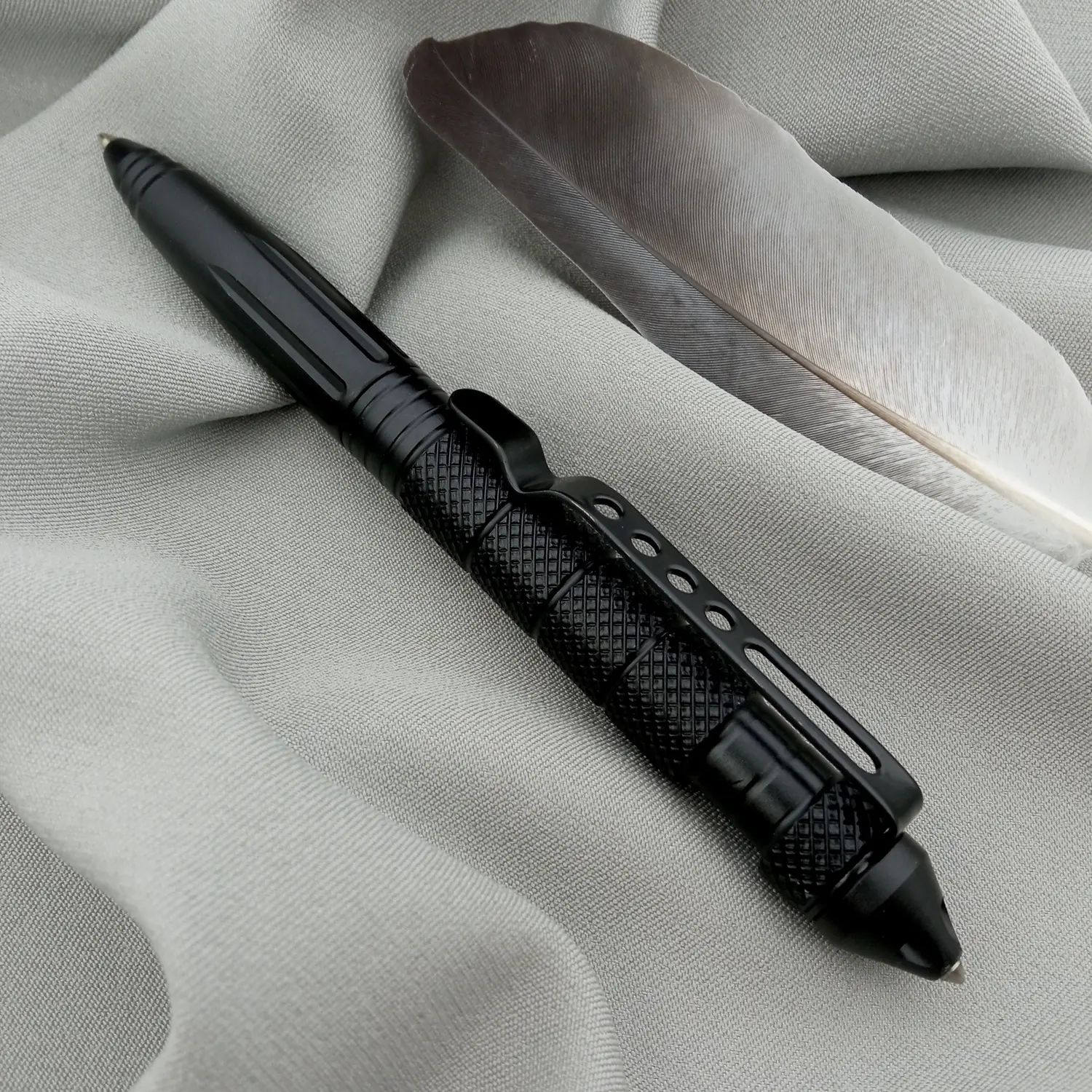 Тактична ручка Crusher з авіаційного алюмінію зі склобоєм – це багатофункціональний універсальний аксесуар для військових, поліцейських, мандрівників та просто любителів активного відпочинку. Спеціальний картридж під тиском дозволяє писати під різними кутами і навіть під водою, а також зменшує витрату чорнила. Міцна і водночас легка металева конструкція з насічками робить ручку дуже зручною для використання та витримує лазерне гравіювання. Гострий наконечник, призначений для розбивання скла, може бути корисним у екстрених ситуаціях, наприклад, при аварії чи нападі. Представлена у класичному чорному кольорі, тому стильно виглядає у повсякденному житті та не привертає зайвої уваги під час туристичних прогулянок.