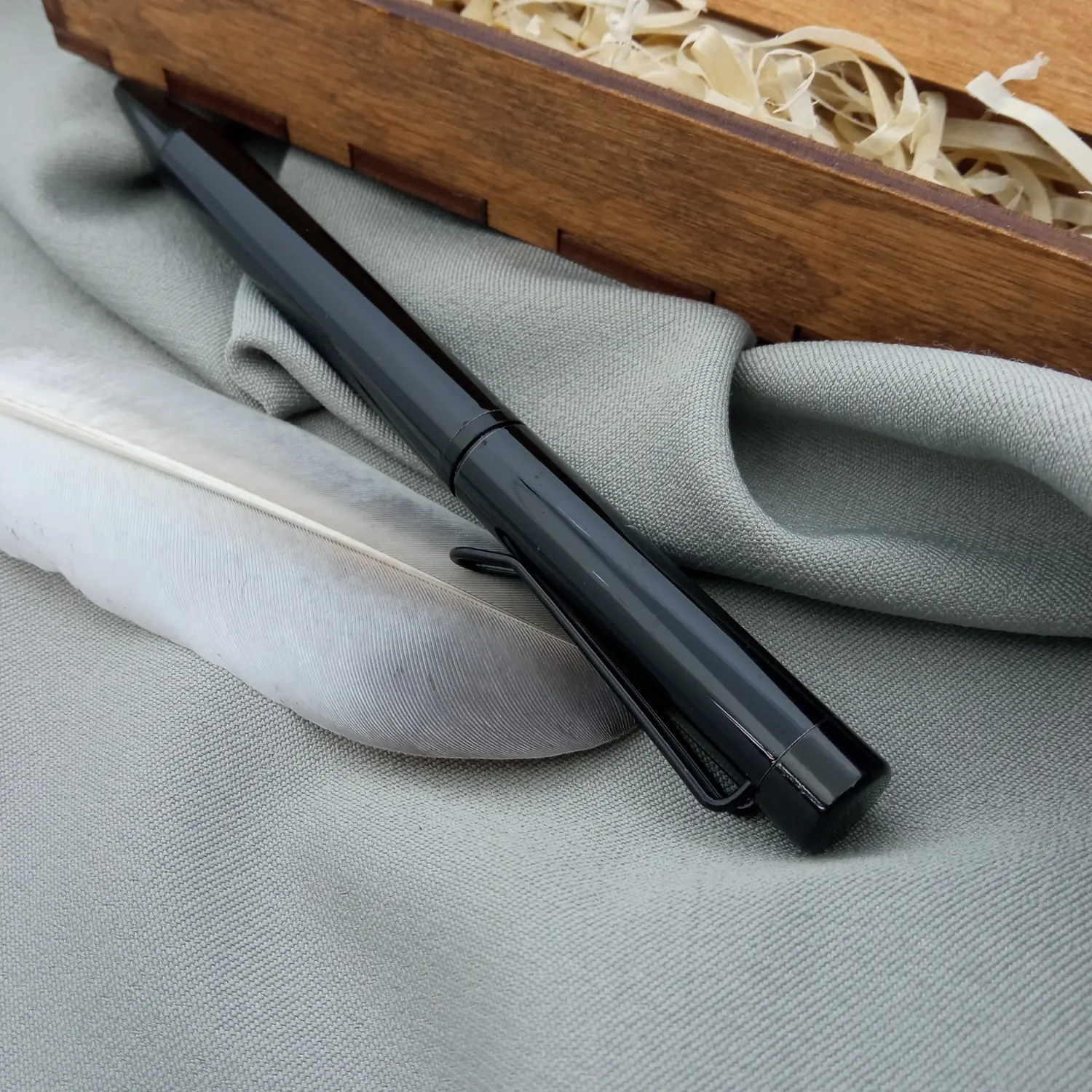 Ручка Steel knight - це строгий чорний стиль та престижне виконання. Елегантний дизайн і бездоганна міцність даної моделі дозволяють нанесення персонального лазерного гравіювання білого кольору, яке робить кожну ручку унікальною та неповторною.